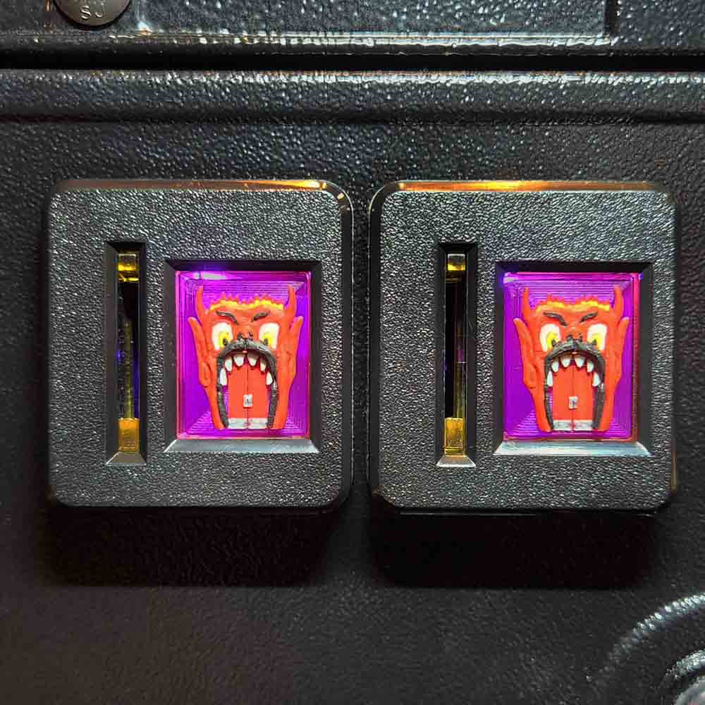 These 7-color 3D coin reject buttons feature the entrance to Dante’s Inferno Room! Mid-layer filament changes allow for full color integration on the designs and fuses them together as one single continuous print.