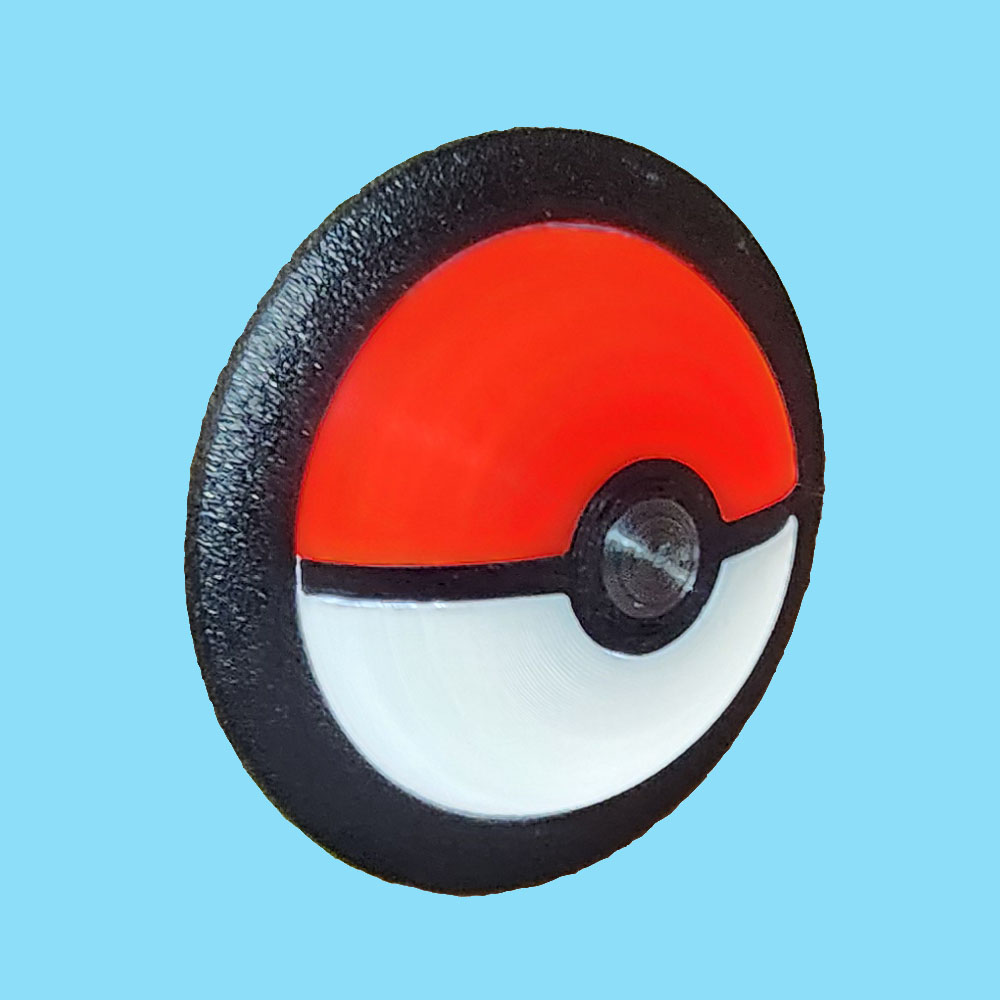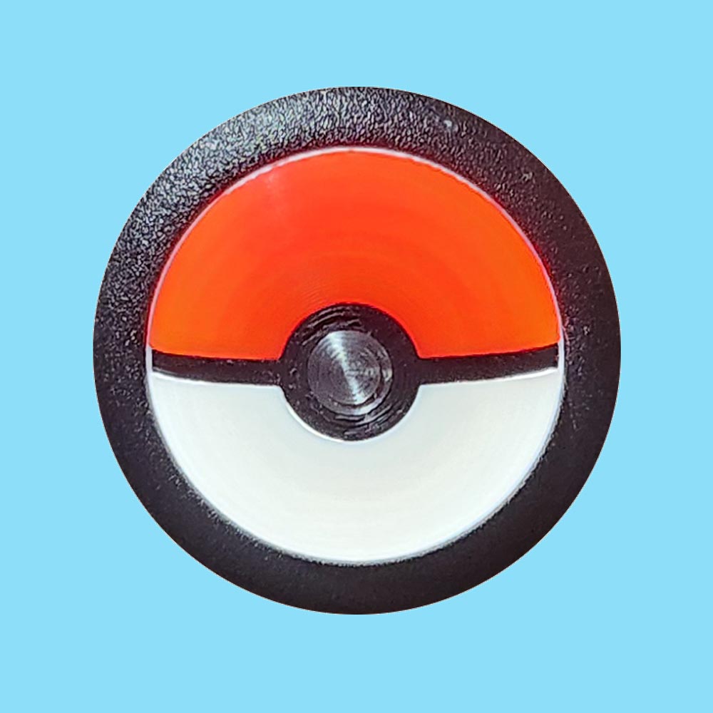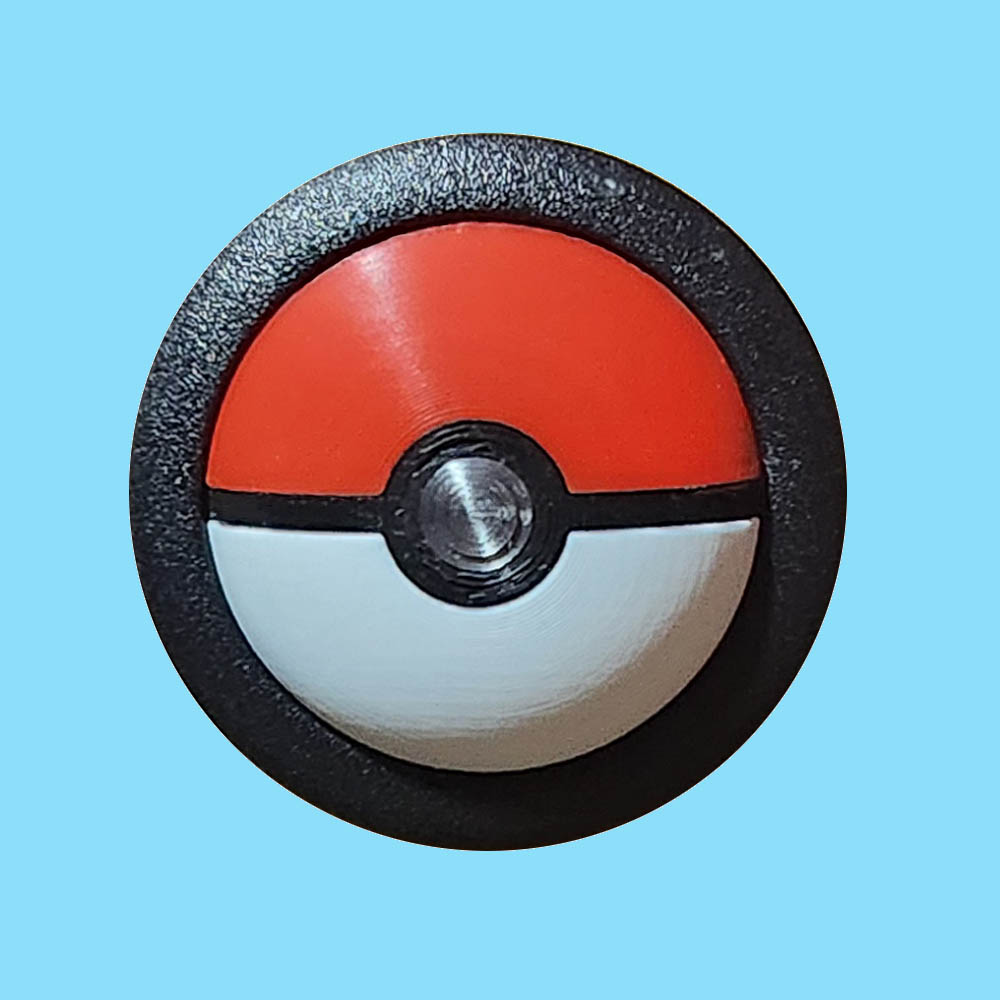 Get started catching Pokémon with a poké ball 3D start button from Rocket City Pinball! This representation of a poké ball features smooth curvature, with natural depth around the black seam and a raised center button. RCP’s unique design utilizes six different color filaments, resulting in a button that looks crisp red & white while unlit, and still glows a beautiful bright red & white when lit. Mid-layer filament changes permanently fuse all components together.